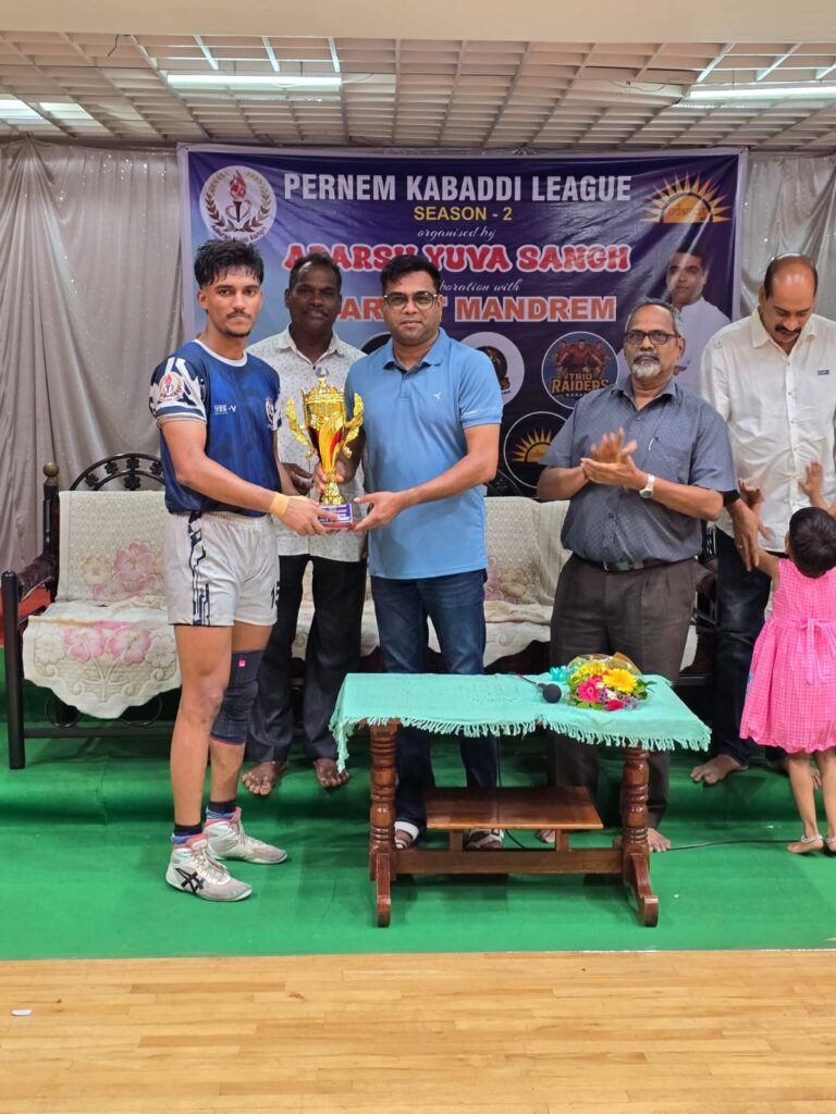 तसेच स्पर्धेतील उत्कृष्ट चढाई म्हणून हरीश जल्मी आणि उत्कृष्ट पकड म्हणून रामा वेळीप यांना गौरविण्यात आले.