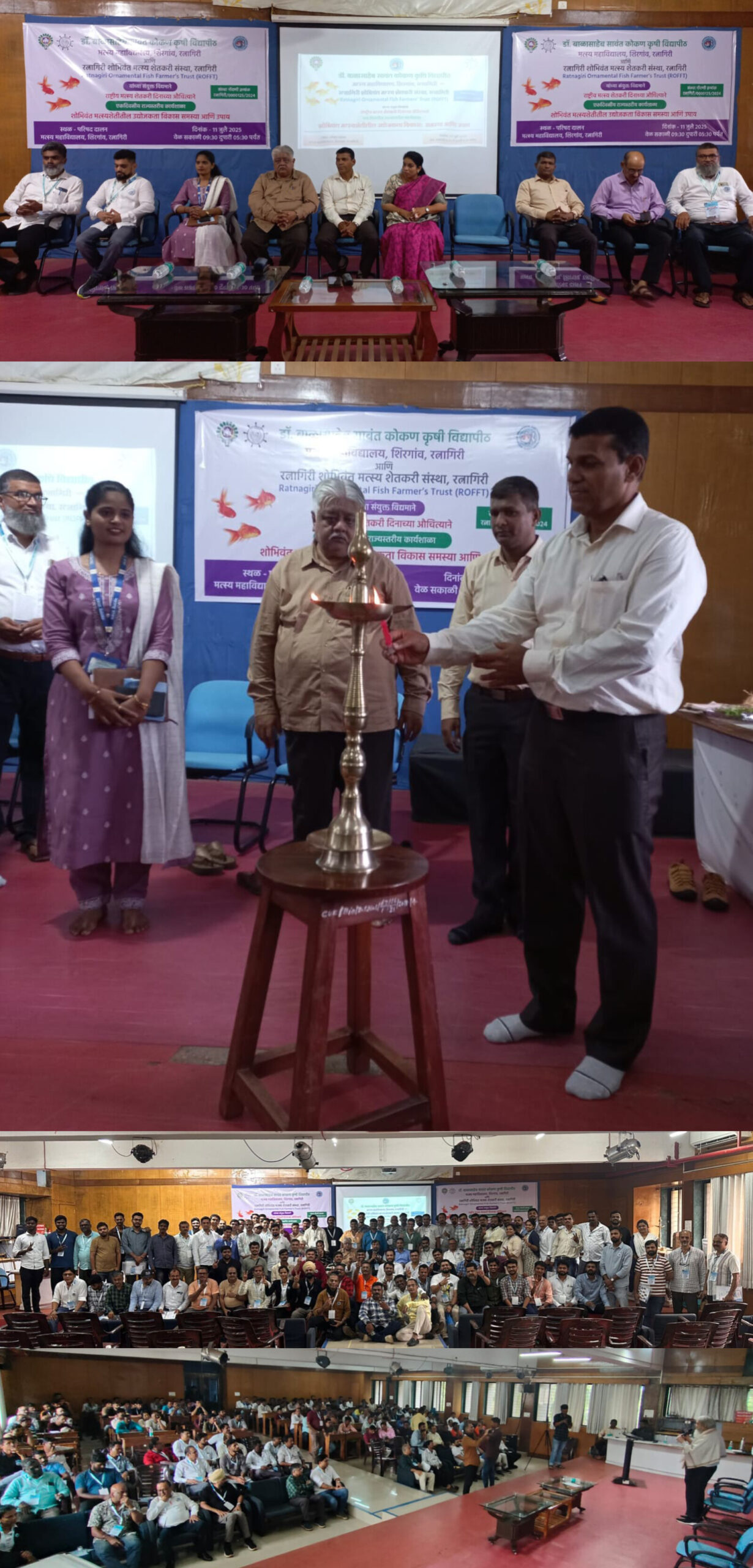 अमित सुवारे आदी उपस्थित होते. या कार्यशाळेचे उद्घाटन मान्यवरांचे हस्ते दीप प्रज्वलनाने झाले. या राज्य स्तरीय कार्यशाळेसाठी महाराष्ट्राच्या कानाकोपऱ्यातून सुमारे २०० हून शोभिवंत मत्स्य शेतकरी कार्यक्रमाला उपस्थित होते.