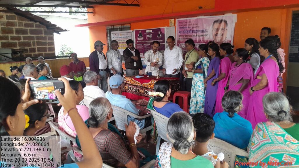 भाजपाचे महाराष्ट्र प्रदेश अध्यक्ष रवींद्र चव्हाण यांच्या वाढदिवसानिमित्त गेळे ग्रामपंचायत आणि आंबोली प्राथमिक आरोग्य केंद्र यांच्या संयुक्त विद्यमाने गेळे गावात आयोजित करण्यात आलेल्या आरोग्य शिबिराला उत्स्फूर्त प्रतिसाद लाभला. गेळे ग्रामपंचायत येथे आयोजित करण्यात आलेल्या या शिबिराचे उद्घाटन गेळे सरपंच सागर ढोकरे यांच्याहस्ते करण्यात आले.
