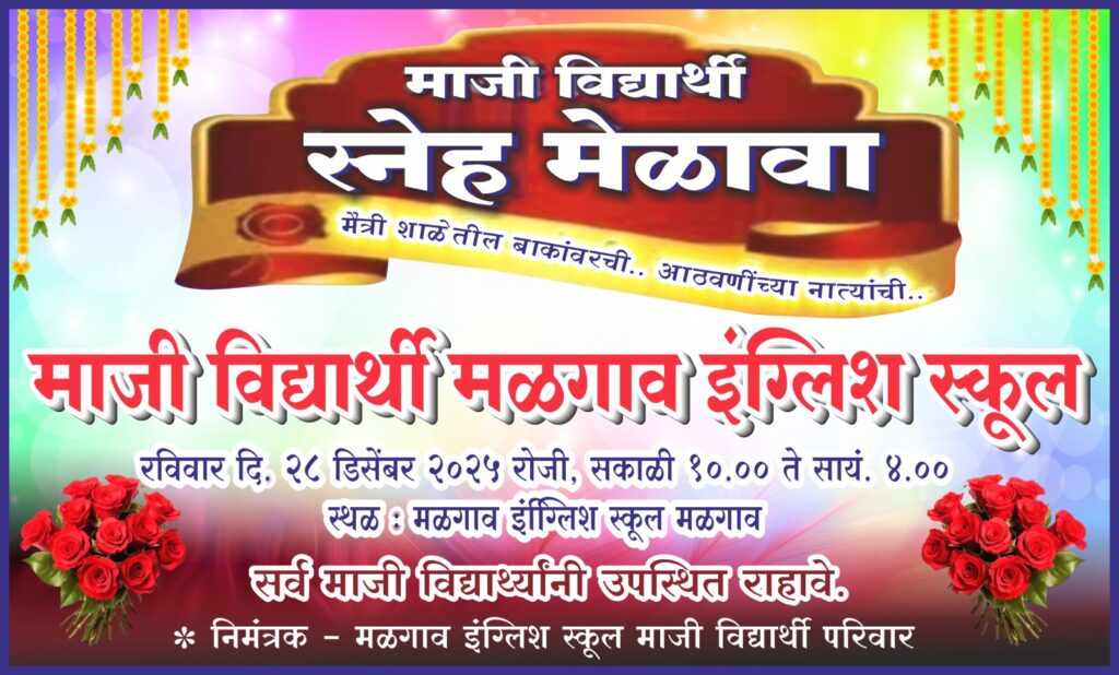या पवित्र सोहळ्यासाठी मळगांव इंग्लिश स्कूलच्या सर्व माजी विद्यार्थ्यांनी मोठ्या संख्येने उपस्थित राहून या कार्यक्रमाची शोभा वाढवावी आणि आपल्या शालेय जीवनातील अनमोल ठेवा पुन्हा अनुभवावा, असे आवाहन ‘माजी विद्यार्थी परिवार’ यांनी केले आहे.