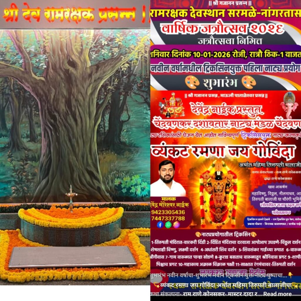 सावंतवाडी: शनिवार दिनांक १० जानेवारी २०२६ रोजी सरमळे (नांगरतासवाडी )येथे श्री देव राम रक्षक देवतेचा जत्रा उत्सव साजरा