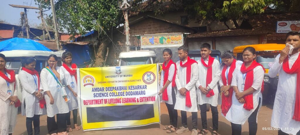 दोडामार्ग:पंचायत समिती व जिल्हा परिषद निवडणुकीच्या पार्श्वभूमीवर मतदारांमध्ये मतदानाबाबत जागरूकता निर्माण करण्यासाठी आ. दीपकभाई केसरकर महाविद्यालयाच्या विद्यार्थ्यांनी पुढाकार घेत दोडामार्ग बाजारपेठेत प्रभावी पथनाट्य सादर केले. लोकशाही प्रक्रियेत प्रत्येक मतदाराचा सहभाग महत्त्वाचा असल्याचा संदेश या पथनाट्यातून अत्यंत प्रभावीपणे देण्यात आला.